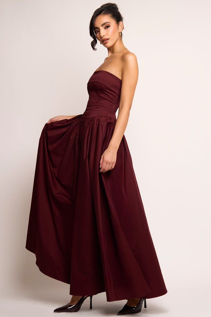 Edith Burgundy Bandeau Corset Gown Maxi Dress