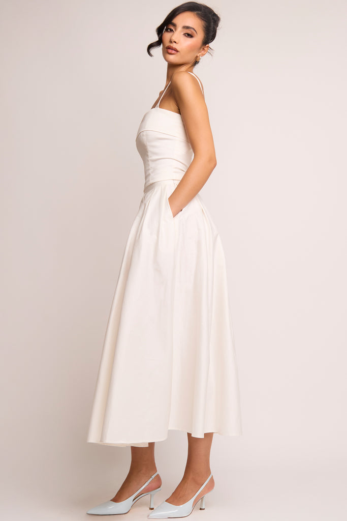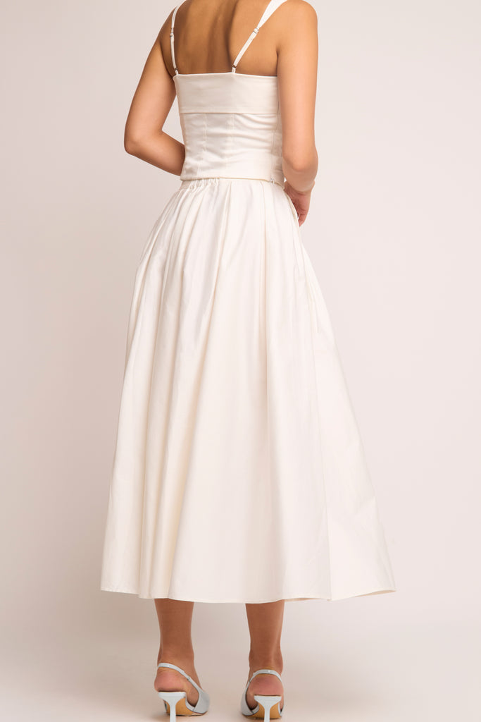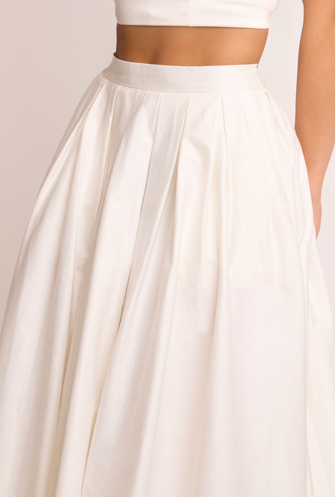 Daisy White Box Pleat Cotton Maxi Skater Skirt