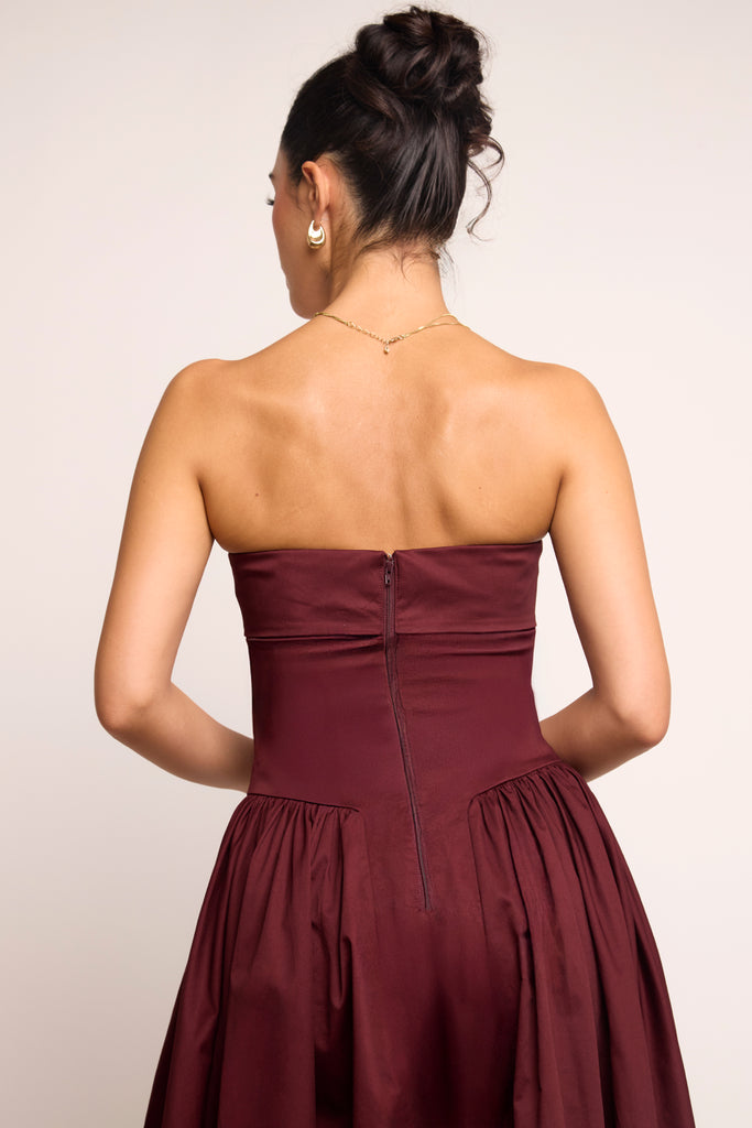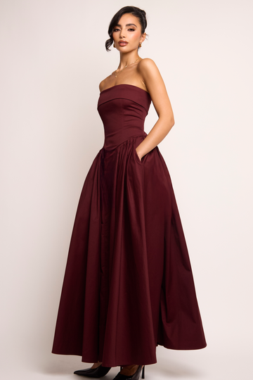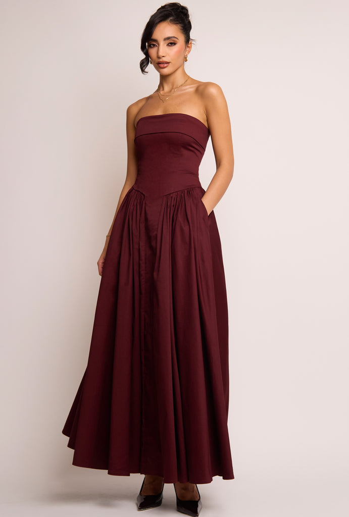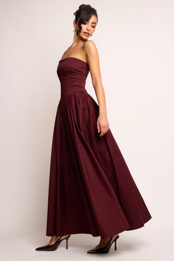 Edith Burgundy Bandeau Corset Gown Maxi Dress