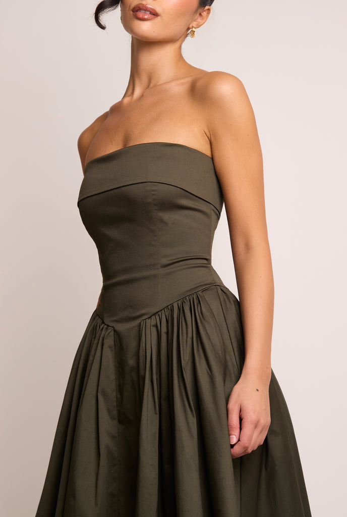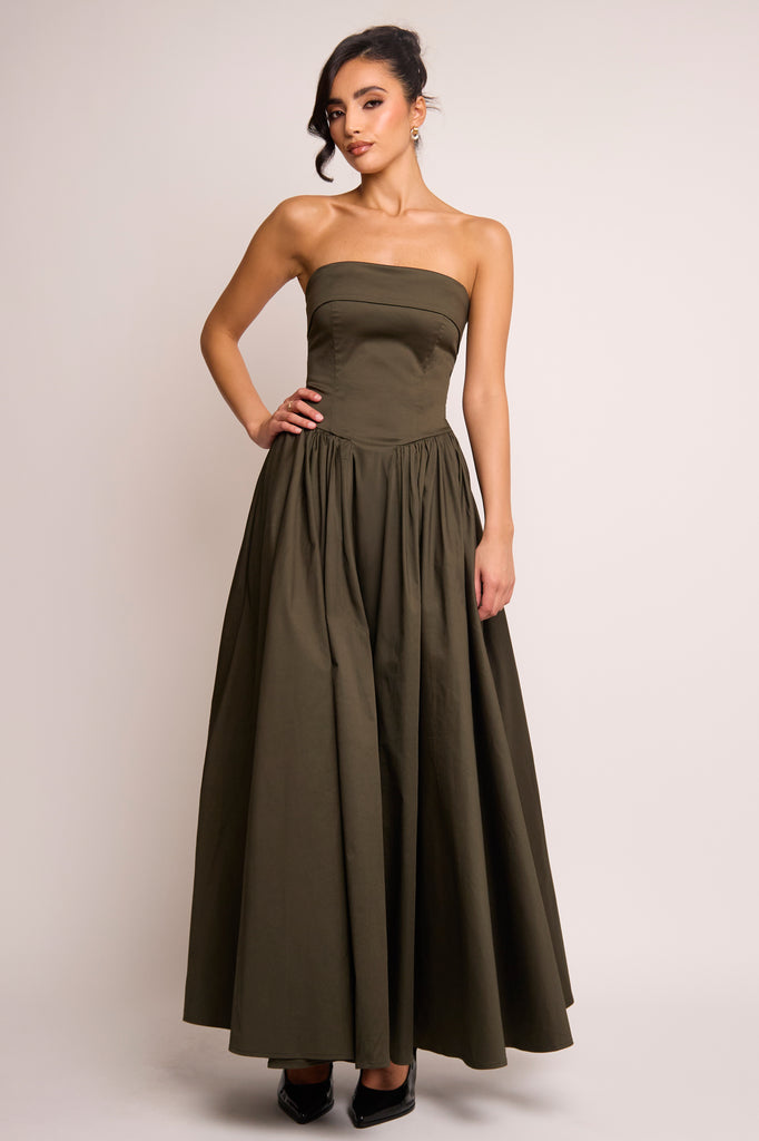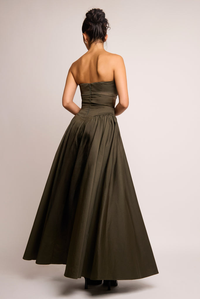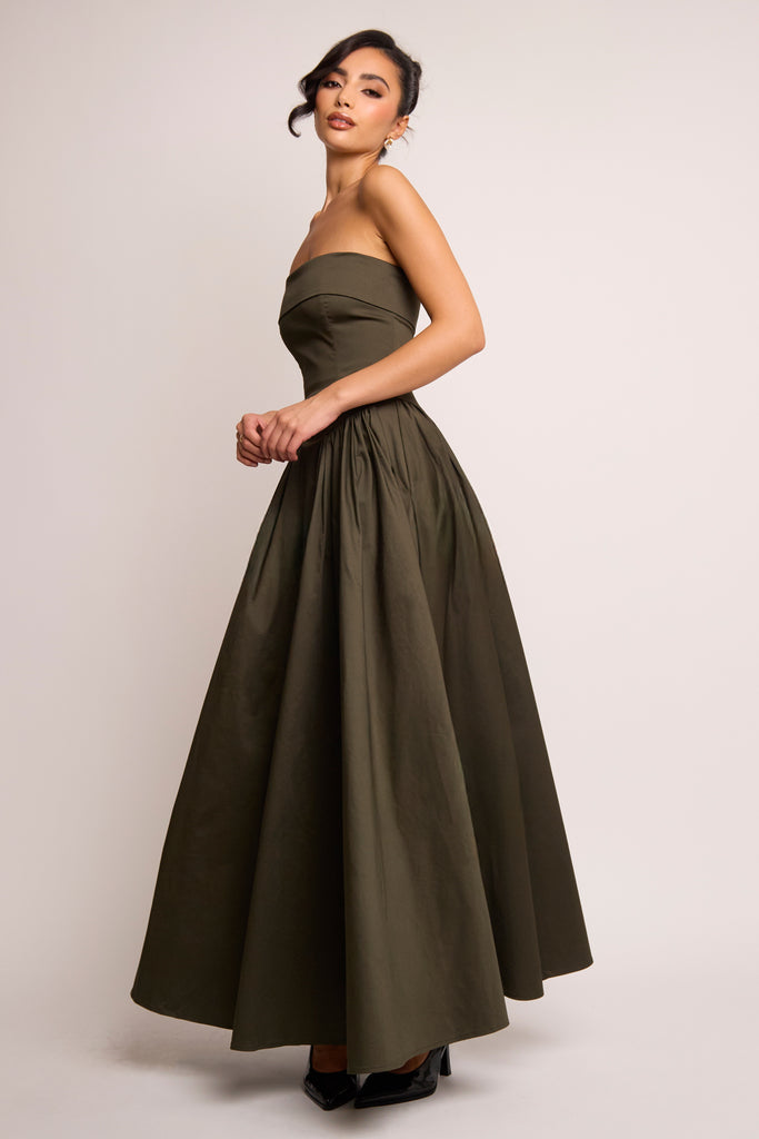 Edith Winter Olive Bandeau Corset Gown Maxi Dress