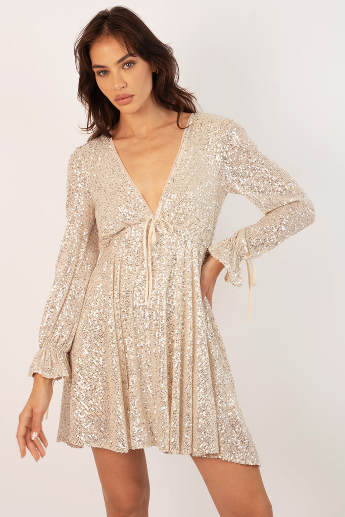 Twirl into the spotlight with the Kima Babydoll Dress in shimmering Silver, This dress is all about bringing out your playful side with its flouncy, free-flowing silhouette that dances as you do.