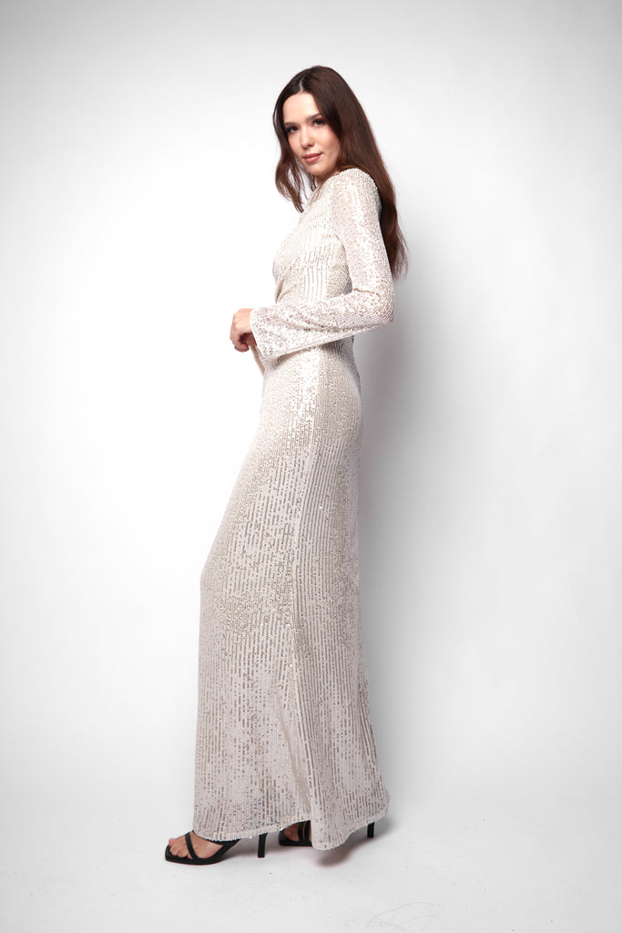 Lenny Silver Sequin Long Sleeve Maxi Dress