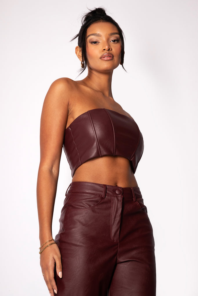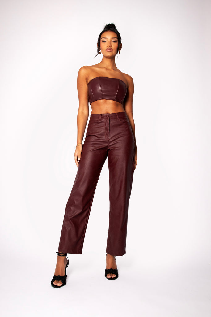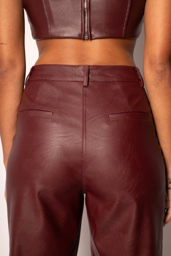 Mimi Burgundy Faux Leather Straight Leg Pants