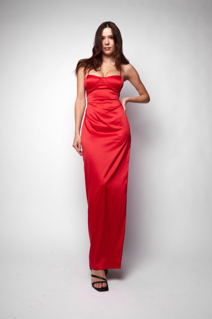 Turn up the heat in the Rita-O Red Lace Up Maxi Dress, designed to captivate with its sultry, elegant style. Made from luxurious warm red satin, this dress features a stunning side slit that adds a daring edge. The fitted corset bodice comes with boning in the bust for support and shape, while the lace-up back offers a dramatic finish, letting you adjust the fit to perfection. With its sleek silhouette and bold color, this dress is perfect for making a statement at any event.