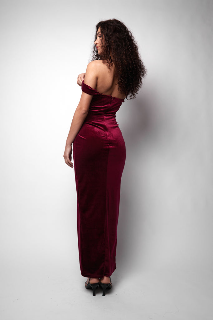 Simmi-O Oxblood Velvet Off-The-Shoulder Maxi Dress